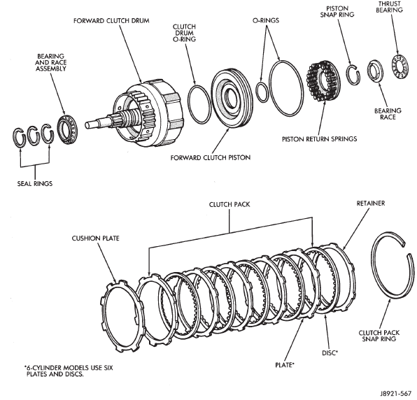 (12) Recheck clutch piston stroke length using same method outlined at beginning of disassembly procedure. If stroke length is not within specified limits, replace clutch discs.