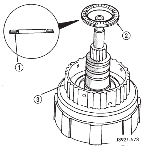 (1) Lubricate bearing and race assembly with petroleum jelly and install it in clutch drum (Fig.